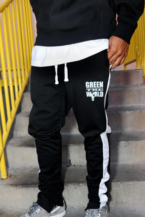 The Black Green The World Track Pants are a must have. They are comfortable, versatile, light and will match with just about any Hoodie or Crew you match them with.